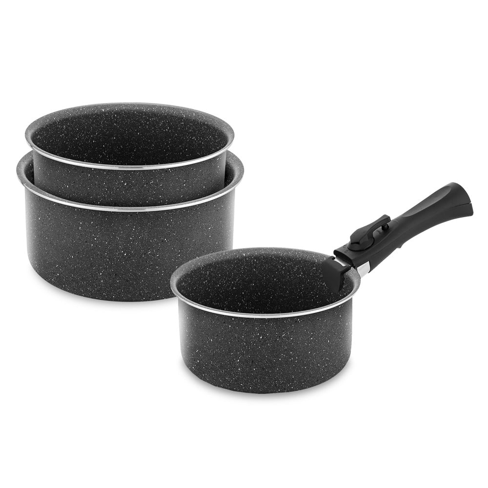 Transformo përvojën tënde të gatimit me këtë set revolucionar tenxheresh në ngjyrë gri, i projektuar për efikasitet maksimal dhe ruajtje hapësire. Ky set elegant dhe funksional, i përbërë nga tenxhere me diametër 16 cm, 18 cm dhe 20 cm, është zgjidhja ideale për çdo kuzhinë moderne. Çelësi i këtij seti është doreza e lëvizshme dhe inovative. Kjo veçori unike të lejon të përdorësh tenxheret si në sobë, ashtu edhe në furrë, dhe i bën ato jashtëzakonisht të lehta për t'u ruajtur pasi heqja e dorezës kursen hapësirë të çmuar. Fleksibiliteti që ofron do të ndryshojë mënyrën si gatuan dhe organizon kuzhinën. Të prodhuara nga alumini cilësor dhe të veshura me një shtresë të avancuar qeramike kundër ngjitjes, këto tenxhere garantojnë një gatim pa mundim. Ushqimi nuk do të ngjitet, duke e bërë pastrimin një detyrë të shpejtë dhe të lehtë. Shtresa qeramike është gjithashtu e sigurt dhe pa kimikate të dëmshme, duke të mundësuar të gatuash më shëndetshëm me më pak vaj. Baza e tenxhereve është e përshtatshme për induksion, duke siguruar shpërndarje uniforme dhe të shpejtë të nxehtësisë në të gjithë sipërfaqen. Kjo do të thotë gatim i barabartë dhe efikasitet maksimal energjie, pavarësisht llojit të sobës (gaz, elektrike, qeramike, apo induksion). Ky set tenxheresh nuk është thjesht një mjet gatimi, por një investim në komoditet, stil dhe gatim të shëndetshëm. Zgjidh këtë set për një kuzhinë më të organizuar dhe një eksperiencë gatimi të përmirësuar!