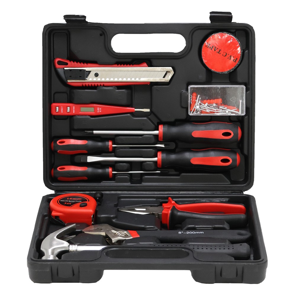 Seti perfekt per kryerjen e puneve te perditshme ne shtepine tuaj. Seti perfshin nje thike, nje izolues PVC, nje indikator, 4 kacavida, nje meter, nje pince 6", nje celes anglez 8", nje cekic dhe kutine e mbajtjes se ketyre veglave.