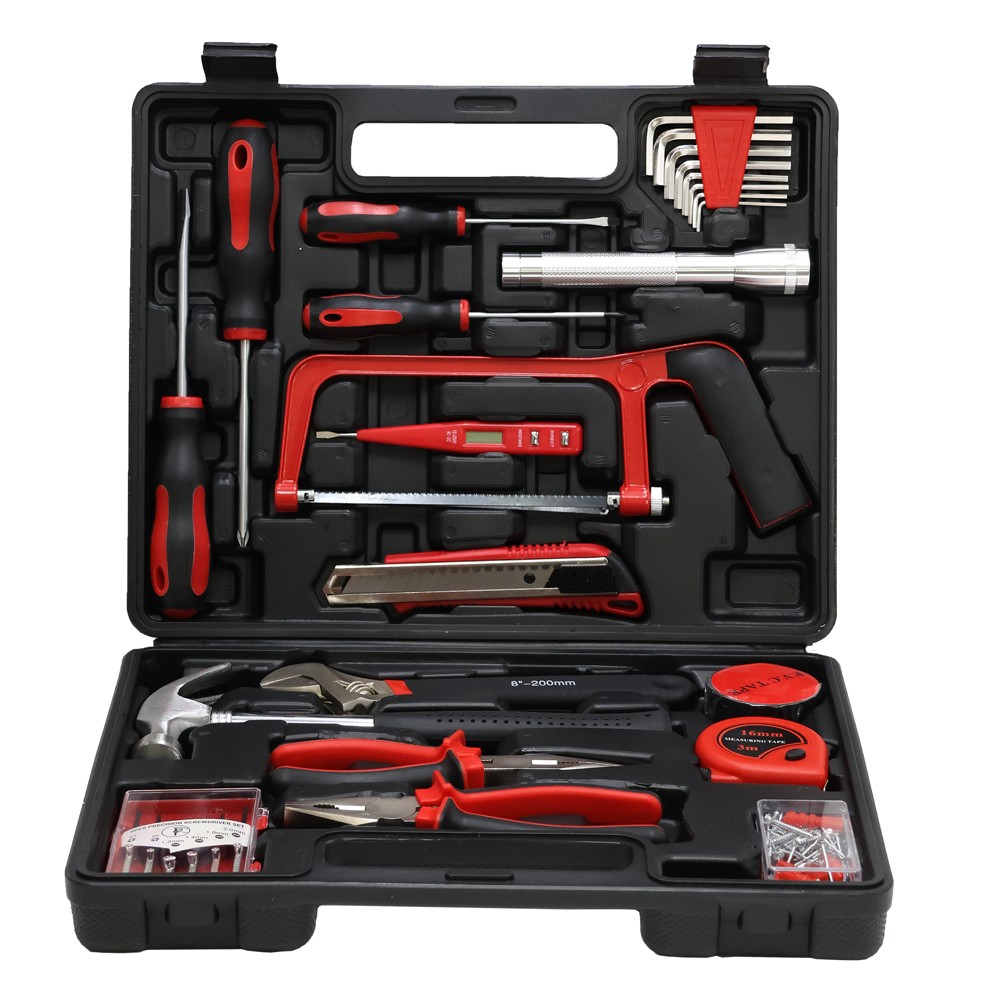 Seti perfekt per kryerjen e puneve te perditshme ne shtepine tuaj. Seti perfshin 4 kacavida, 1 thike, nje mini set me 8 celesa hekzagonal, 1 indikator, 1 sharre, 1 celes anglez 8", 1 izolues PVC, 1 cekic, 1 meter, 2 pinca, 6 koka precizioni, 2 lama per sharren dhe kutine e mbajtjes se veglave.