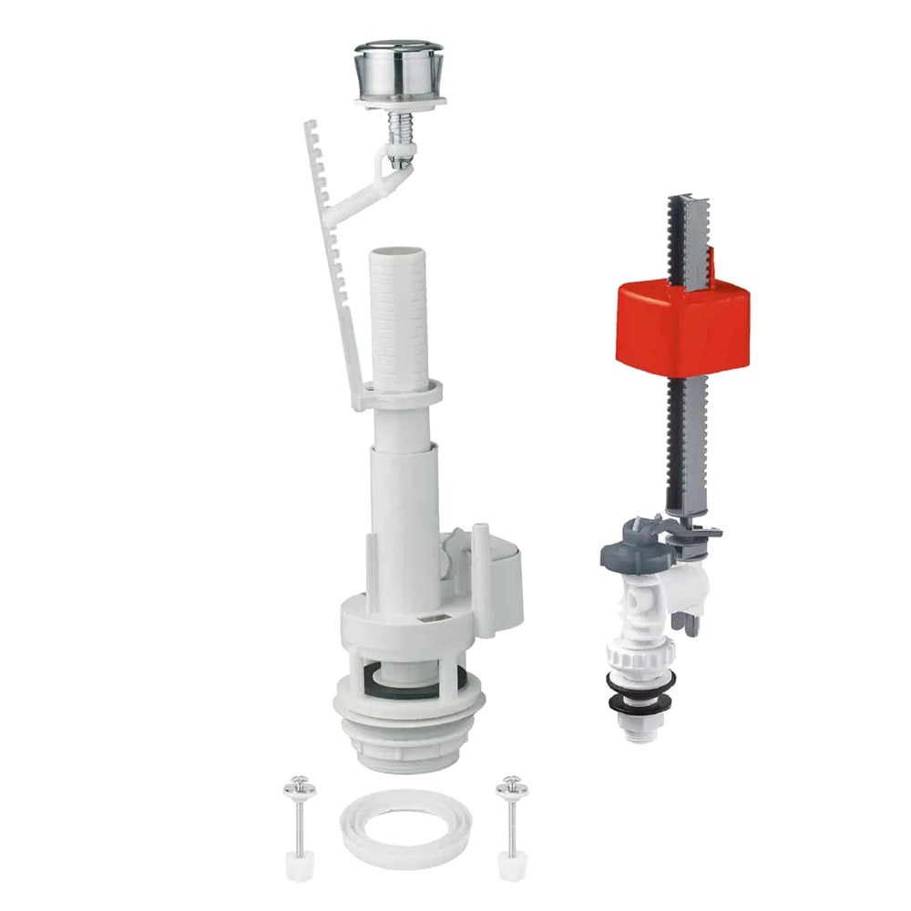 Discharge mechanism set, 1 button + vertical flange, 3/8'', plastic, white
