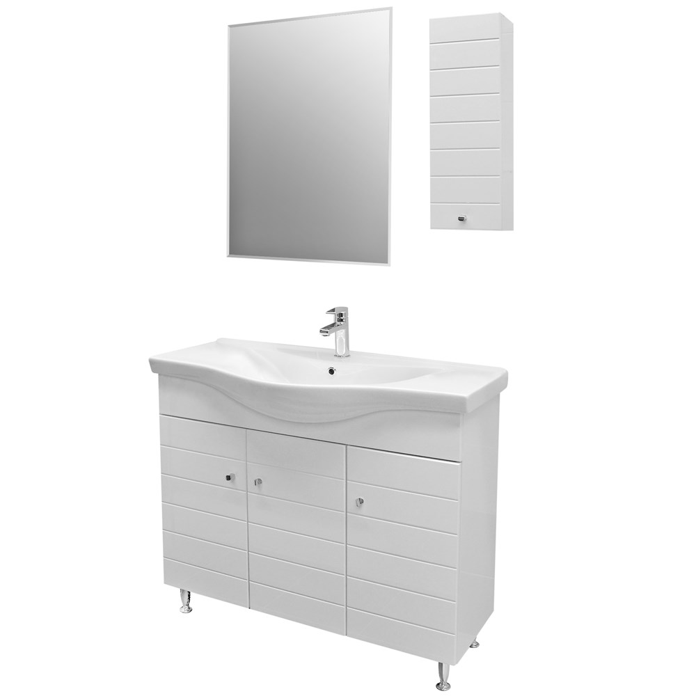 Set Mobilje tualeti, 96x34x97.5 cm + Pasqyre tualeti, 80x60 cm + Dollap anesor, 20x15x60 cm, material melamine, ngjyre e bardhe