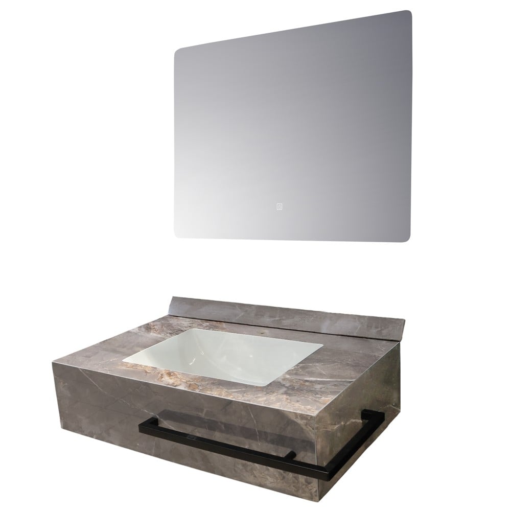 Po vlerësoni:Toilet furniture set, wall-mounted, sintered stone, Measures: W 80 cm x D 50 cm x H 20 cm. LED mirror: W 80 cm x H 60 cm