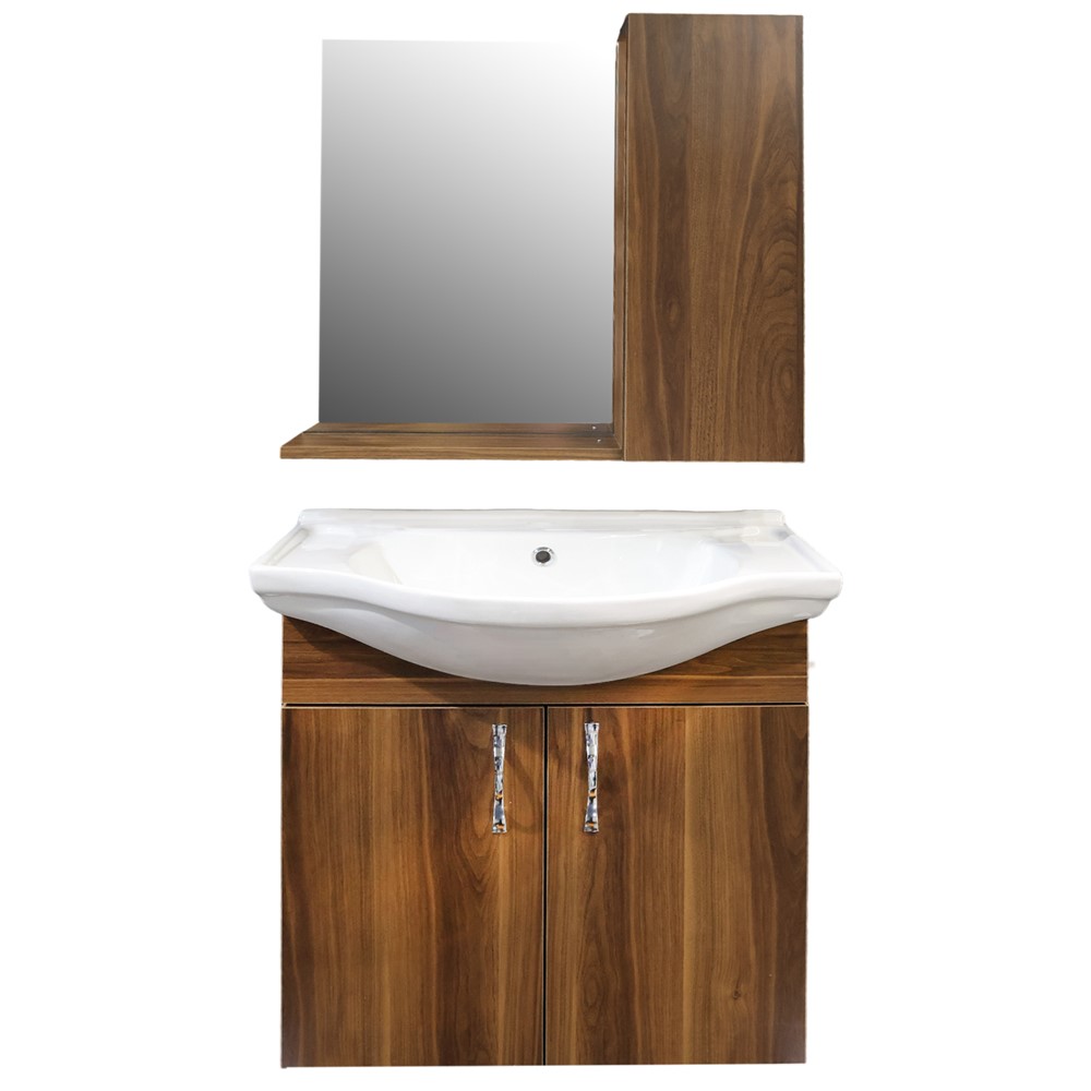 Seti i Mobilje tualeti'' SQUARE 80 '' montim në mur, ngjyrë dru arre prezanton modelin elegant që gjallëron tualetin tuaj. Lavamani i bardhe porcelani ofron stil në dekorin e tualetit tuaj, lehtësi për t’u pastruar duke siguruar një pamje të bukur dhe shume moderne per tualete me hapesira mesatare. Materiali i mobiljeve prej MDF është rezistent ndaj lagështirës. Ngjyra e bardhe kompozohet shumë mirë në ambiente me pllaka moderne njëngjyreshe dhe me motive të ngjyrave të ndryshme. Seti përfshin lavamanin, dollapin poshtë tij dhe pasqyrën, të gjitha të paketuara për një montim shumë të thjeshtë dhe të shpejt nga cilido.