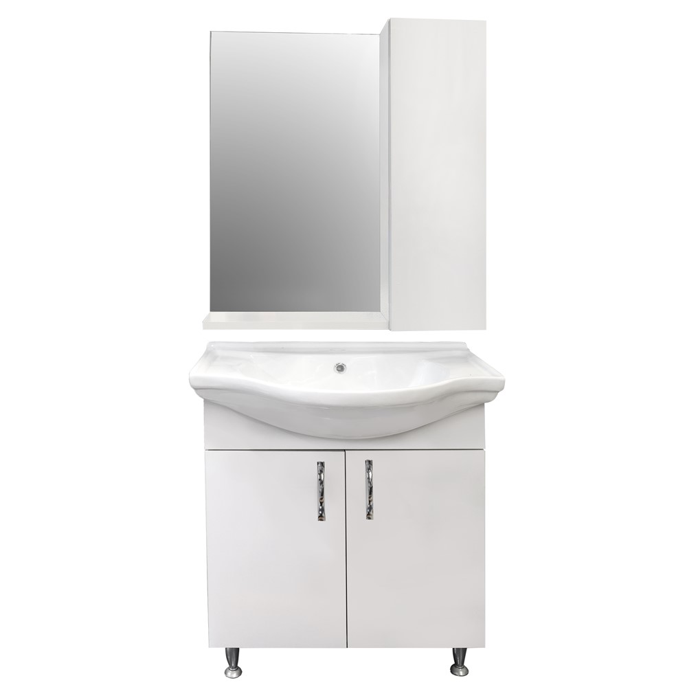 Seti i Mobilje tualeti'' SQUARE 80 '' ngjyra e bardhë prezanton modelin elegant që gjallëron tualetin tuaj. Lavamani i bardhe porcelani ofron stil në dekorin e tualetit tuaj, lehtësi për t’u pastruar duke siguruar një pamje të bukur dhe shume moderne per tualete me hapesira mesatare. Materiali i mobiljeve prej MDF është rezistent ndaj lagështirës. Ngjyra e bardhe kompozohet shumë mirë në ambiente me pllaka moderne njëngjyreshe dhe me motive të ngjyrave të ndryshme. Seti përfshin lavamanin, dollapin poshtë tij dhe pasqyrën, të gjitha të paketuara për një montim shumë të thjeshtë dhe të shpejt nga cilido.