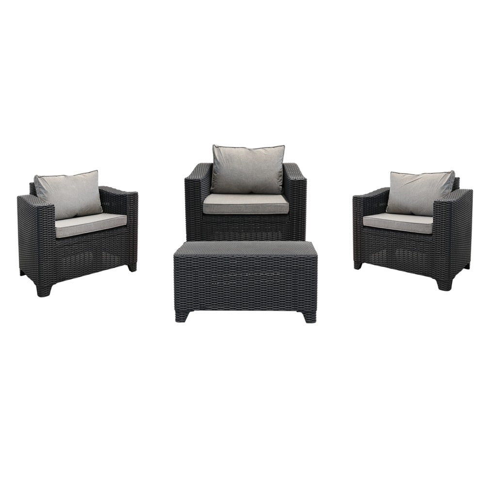 Ky Set ndenjeje Grand prej ratan plastik në ngjyrë gri përfshin tre kolltukë të vetëm me shilte (56x64xH89 cm) dhe një tavolinë mesi (48x85xH42 cm), duke ofruar rehati dhe funksionalitet për ambientet e jashtme. Materiali prej ratanit plastik siguron qëndrueshmëri, rezistencë ndaj motit dhe lehtësi në mirëmbajtje, ndërsa dizajni modern i bën kolltukët dhe tavolinën të përshtatshme për çdo hapësirë. Ky set është ideal për ballkone, tarraca apo kopshte, duke krijuar një zonë mikpritëse dhe të rehatshme për relaks dhe socializim.