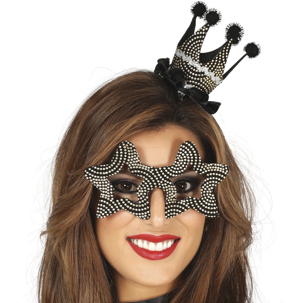 Set New Year, kapëse për flokët kurorë, syze dekoruese, e zezë me pika, plastike + poliestër, 2 copë