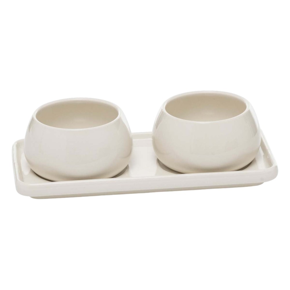 Prezantojmë Setin Nora, një zgjedhje elegante dhe minimaliste për servirjen e antipastave, salcave, apo ushqimeve të vogla. Ky set, i punuar me kujdes nga qeramikë cilësore në një ngjyrë të bardhë të pastër, sjell sofistikim dhe funksionalitet në çdo tryezë. Seti përfshin gjithashtu një tabaka koordinuese, e cila jo vetëm që shërben si bazë e qëndrueshme për tasat, por edhe e bën transportin dhe servirjen më të lehtë dhe më tërheqëse. Dizajni i thjeshtë dhe ngjyra e bardhë e papërpunuar i jep Setit Nora një pamje të pastër dhe moderne, e cila përshtatet lehtësisht me çdo stil dekorimi tavoline, nga ai klasik te ai bashkëkohor. Materiali i qeramikës garanton qëndrueshmëri dhe bën që pastrimi të jetë i thjeshtë, pasi tasat dhe tabakaja mund të lahen lehtësisht. Ky set është ideal për mbrëmje me miq, festa familjare, ose thjesht për t'i dhënë një pamje më të organizuar dhe tërheqëse servirjes së përditshme.
