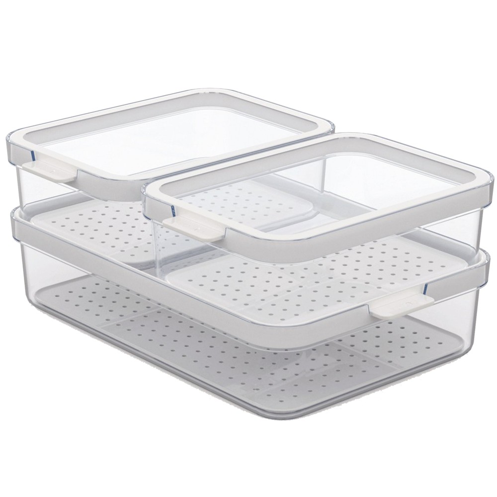 Po vlerësoni:Fridge organizer set (3 pieces), plastic, transparent/white, 2x1.2 L / 1x2.6 L