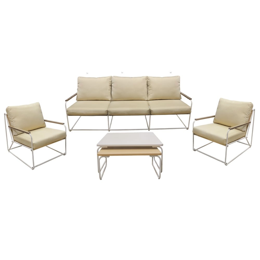 Seti për ambientin e jashtëm "Relax" është një zgjedhje ideale për ata që kërkojnë rehati dhe stil në hapësirat jashtme. I krijuar me ngjyrë bezh të pastër dhe elegante, ky set përfshin 2 kolltukë tek, 1 kolltuk dopio dhe një tavolinë. Kolltukët tek ofrojnë rehati dhe hapësirë për 1 person, me përmasa 72.5x84xH75 cm, ndërsa kolltuku dopio ka përmasa 211x84xH75 cm, duke siguruar hapësirë të mjaftueshme për dy persona. Tavolina me përmasa 80x80xH37.5 cm është ideale për pije, ushqime ose dekorime. Ky set është perfekt për kopsht, verandë, ballkon ose çdo hapësirë tjetër të jashtme, duke ofruar një atmosferë të ngrohtë dhe relaksuese. Materialet e përdorura janë të qëndrueshme dhe të lehta për t’u pastruar, duke e bërë këtë set një opsion funksional dhe të bukur për çdo ambient jashtë shtëpisë.