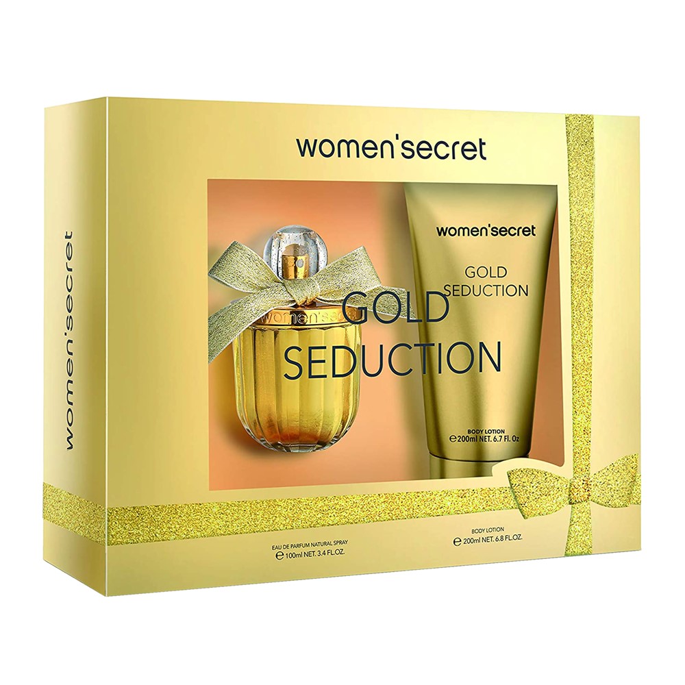 Set per femra, parfum dhe locion për trupin, Gold Seduction, Women'Secret, qelq dhe plastikë, parfum EDP 100 ml, lotion trupi 200 ml, gold, 2 copë, 1 pako