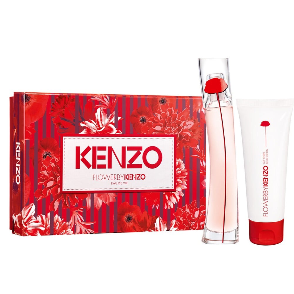 Set per femra,parfum dhe qumësht trupi, Flower by Kenzo Eau de Vie, Kenzo, qelq dhe plastikë, parfum EDP 30 ml, qumesht trupi 75 ml, e bardhë dhe e kuqe, 2 copë, 1 pako