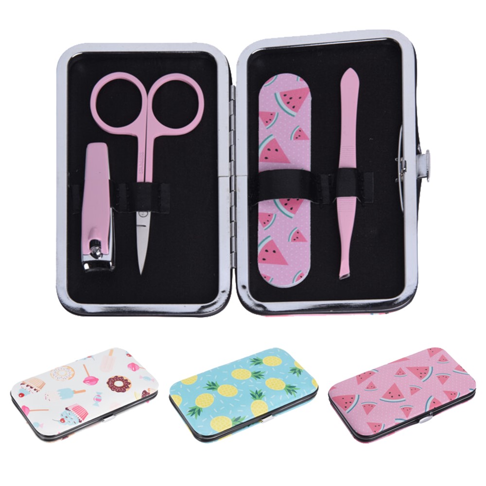 Set për kujdesin e thonjve të duarve, në kuti prej materiali metalik, në formë drejtkëndore, në ngjyra dhe dizajne të ndryshme. Seti përmban një palë gërshërë të vogla, prej materiali inoksi rezistent, një prerëse për thonjtë, një limë për modelimin e thonjve dhe një piskatore për vetullat. Ky produkt ka përmasa të vogla, që e bëjnë të përshtatshëm për t'u marrë me vete në udhëtime.