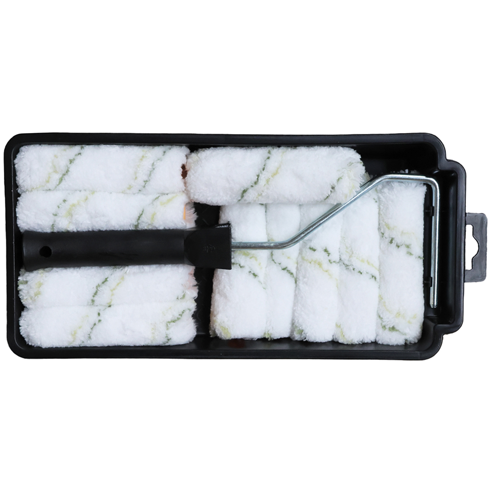 Nje set i shkelqyer per lyerjen e ambienteve tuaja.Seti perbehet nga mbajtesja e bojes ( skaf ), doreza e rulit dhe rulat per lyerje.Eshte nje set i kompletuar i cili gjen perdorin te gjere nga gjithkush. Rulat pastrohen shume thjeshte dhe jane shume thjeshte te riperdorshem edhe pas nje kohe te gjate pune.