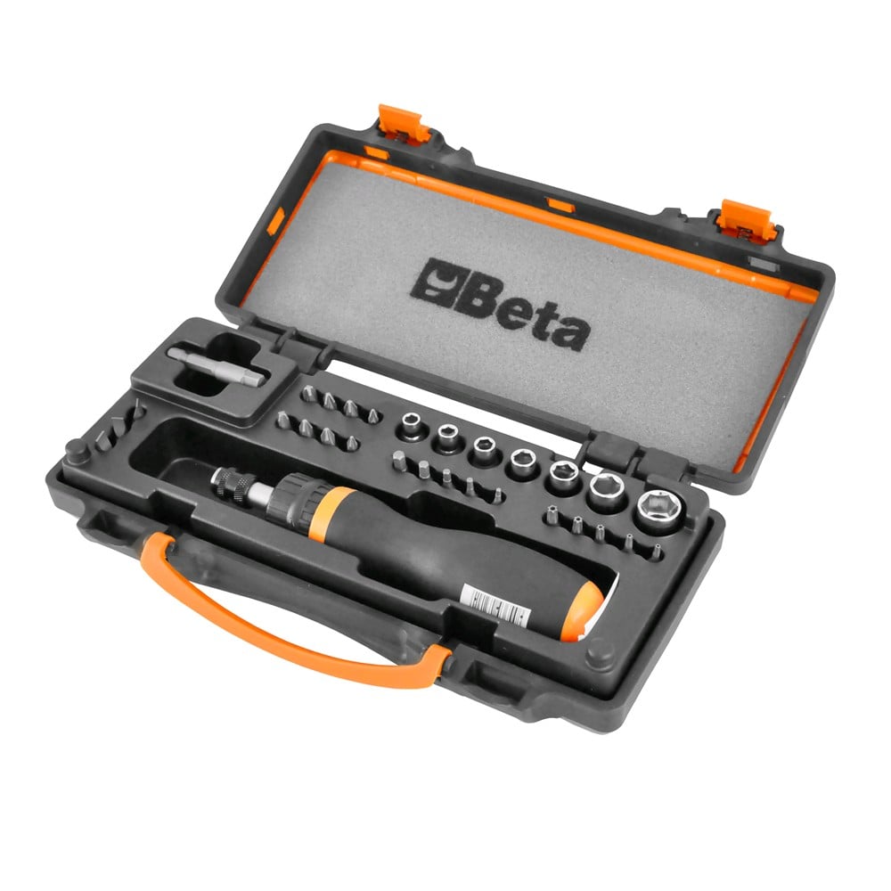 Set profesional me kriket dhe aksesorë, Beta, 23 copë, 1/4", Cr-V, kokë kriketi 5,5.5,6,7,8,10,13, 1 zgjatues 1/4", SL 0.8x5.5mm,1x5.5mm,1.2x6.5mm, PH1,PH2,PH3, PZ1,PZ2,PZ3, TX9,10,15,20,25