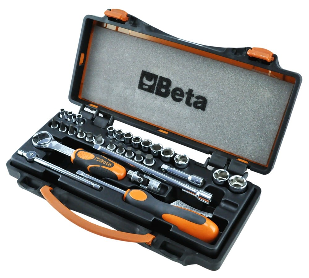 Set profesional me kriket dhe aksesorë, Beta, 30 copë, 1/4", Cr-V, hexagon 4-4,5-5-5,5-6-7-8-9-10-11-12-13-14 mm, S 0,8x4 - 1,2x6,5 - 1,2x8 mm, PH1-PH2-PH3, kokë kriketi T3-T4-T5