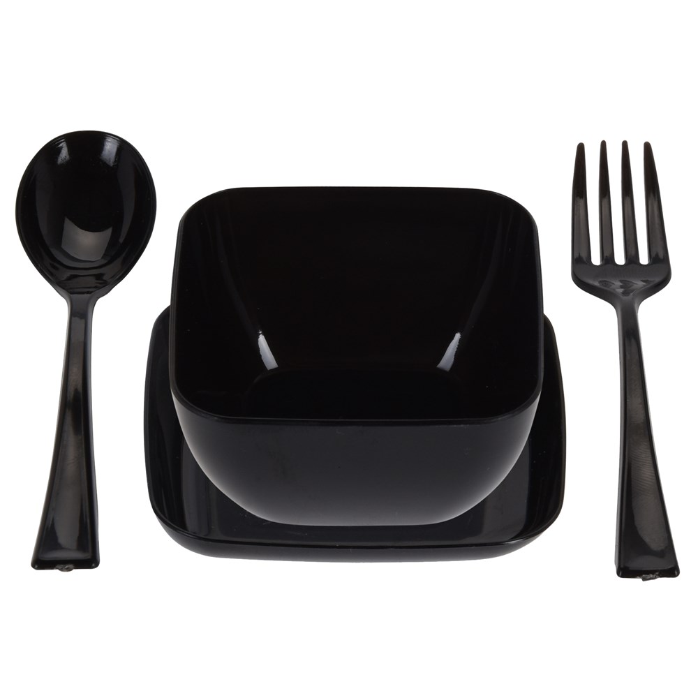 Set servirje, plastike, e zezë-transparente, 16 pjesë, 1 pako