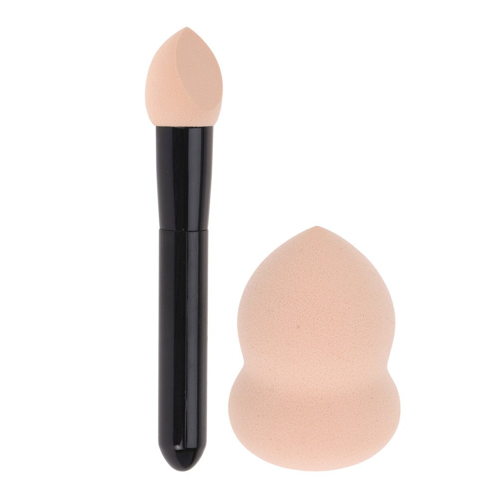 Set sfungjerësh makeup-i, të përbërë prej materiali poliuretani, i cili është i butë për lëkurën dhe rezistent ndaj ujit. Seti përmban një sfungjer me dy anë dhe një sfungjer me majë me kënd dhe me dorezë. Sfungjeri me dizajn të dyanshëm është i përshtatshëm për të aplikuar makeup në zonën e hundës, ballit, faqeve dhe mjekrës, ndërsa fundi me diametër më të vogël përdoret për të përsosur zonat nën sy dhe rreth hundës dhe buzëve. Sfungjeri me kënd përdoret për theksimin e kontureve dhe aplikimin e makeup-it në zonën rreth syve. Ky produkt mund të lahet lehtësisht dhe të ripërdoret.