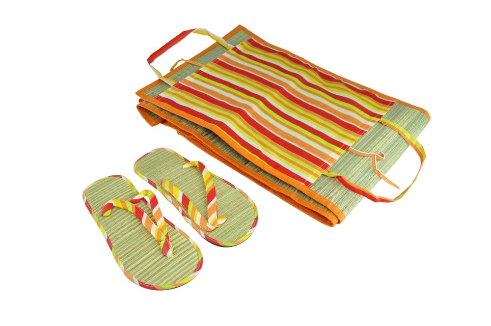Ky set plazhi, shtroje me permase 60x180cm +shapkat Nr38, eshte ideal per ditet e plazhit. Me material bambu natyrale kjo shtroje eshte shume rezistente.