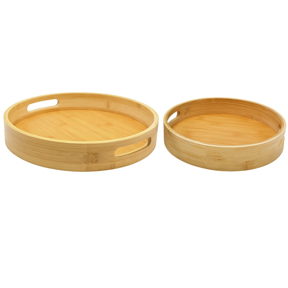 Ky set me dy tabaka servirje prej bambu në ngjyrë natyrale, me diametra 25 dhe 30 cm, sjell elegancë dhe funksionalitet në çdo shërbim. Sipërfaqja e tyre e lëmuar dhe materiali natyral i bambusë krijojnë një atmosferë të ngrohtë dhe harmonike, duke e bërë çdo prezantim të ushqimit të duket i rafinuar dhe i kujdesshëm. Tabakat janë perfekte për servirjen e antipastave, ëmbëlsirave, ose pjate të vogla gjatë darkave me familjen ose miqtë. Dizajni i thjeshtë dhe organik i bën të përshtatshme për çdo ambient dhe stil dekorimi, ndërsa materiali i qëndrueshëm garanton përdorim të gjatë dhe praktik. Ky set është një kombinim i bukur mes natyralitetit, estetikës dhe funksionalitetit, që sjell një prekje elegante dhe moderne në çdo tryezë.