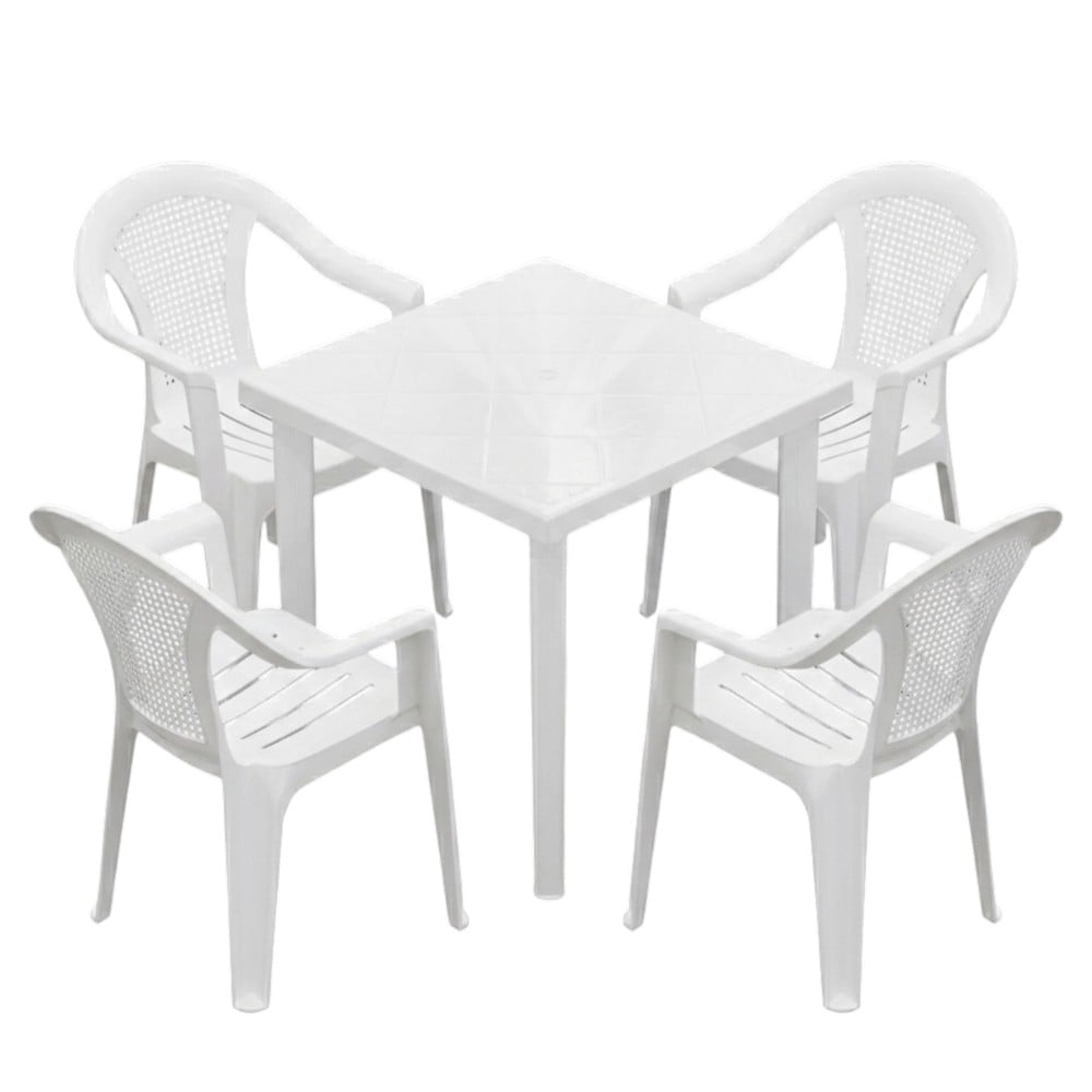 Sillni stil dhe funksionalitet në ambientet tuaja me setin modern Wafa, i përbërë nga një tavolinë dhe 4 karrige elegante. I realizuar nga material cilësor PP (polipropilen), ky set është i qëndrueshëm, i lehtë për mirëmbajtje dhe ideal për përdorim të jashtëm.