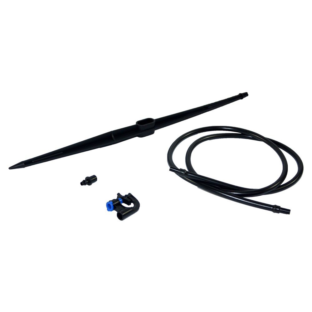 Ky set ujites eshte ideali per ujitjen e bimeve dhe pemeve te kopshtit tuaj. Ka nje kapacitet prej 105 L ne ore dhe mbulon nje hapesire me diameter 8 m. Ky set mund te lidhet lehtesisht me rrjetin kryesor te ujitjes me adaptor 6 mm dhe eshte rezistent ne presionin 6 bar.