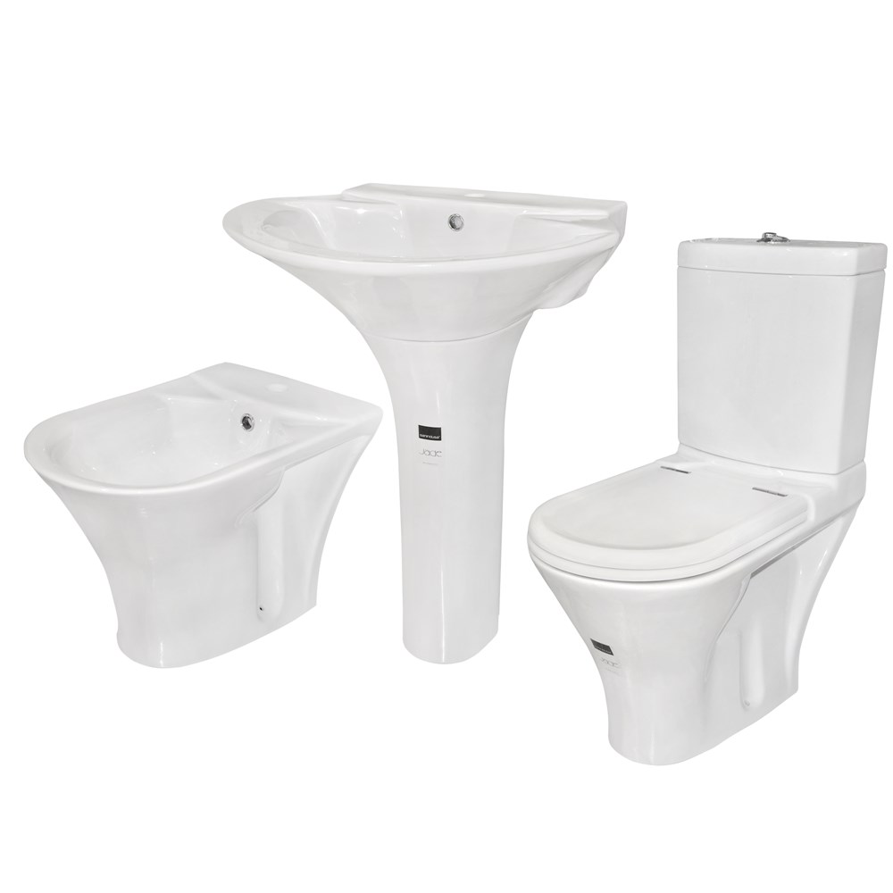 Seti WC universale + Bide + Lavaman CITY përmban esencën e formës tradicionale të harkuar me delikatesë e linja të pastra. Me një konstruksion solid dhe simetrik, ky set tualeti i dhuron stil banjës tuaj. Ngjyra e bardhë e porcelanit kombinohet lehtësisht me çdo dekor. Seti i tualetit përmban një sistem instalimi të thjeshtë dhe montohet lehtësisht. Shtojini banjës tuaj një produkt praktik dhe cilësor!