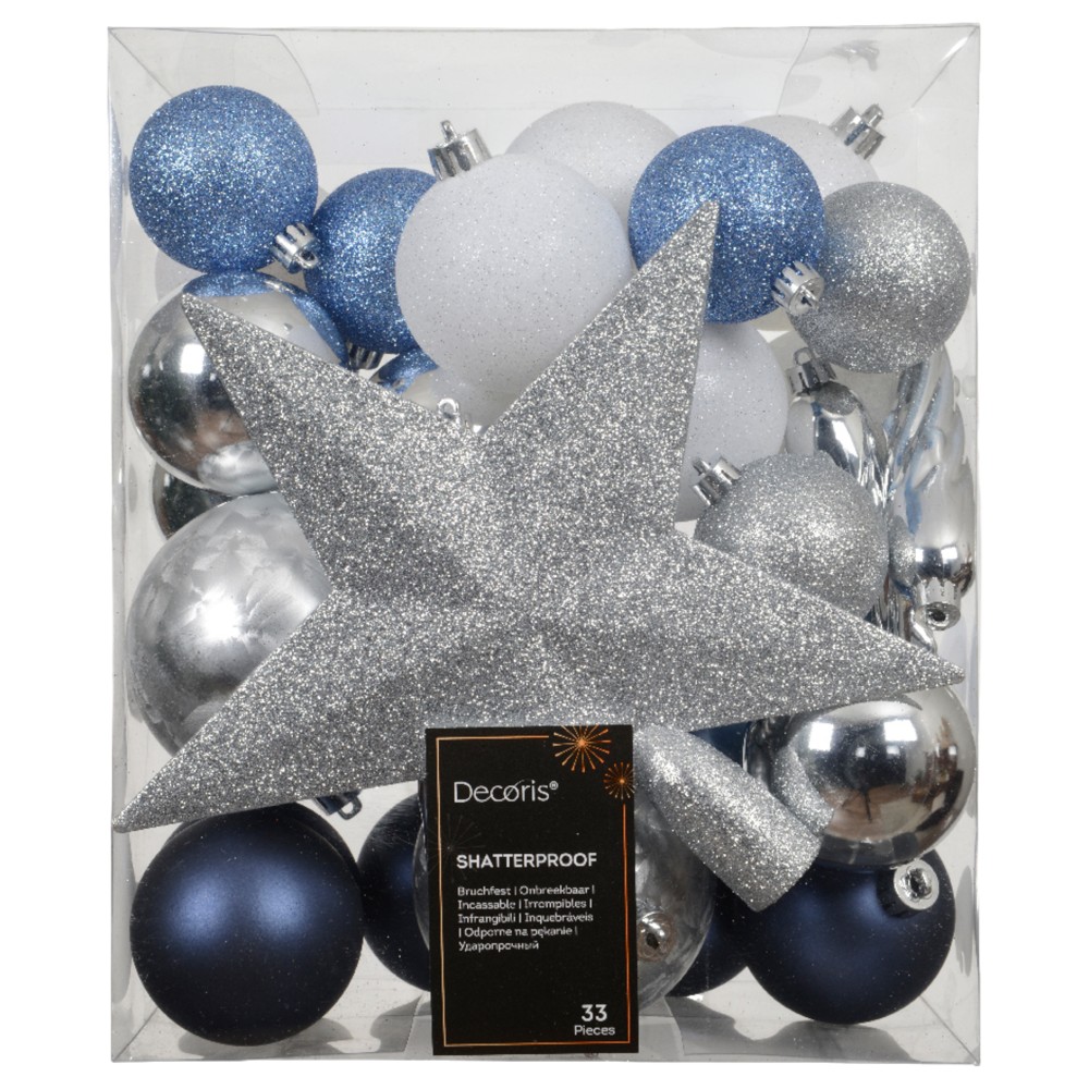 Po vlerësoni:Sfera dekoruese (pk33), qelq, ngjyre silver, blu, bojeqielli, D8 cm