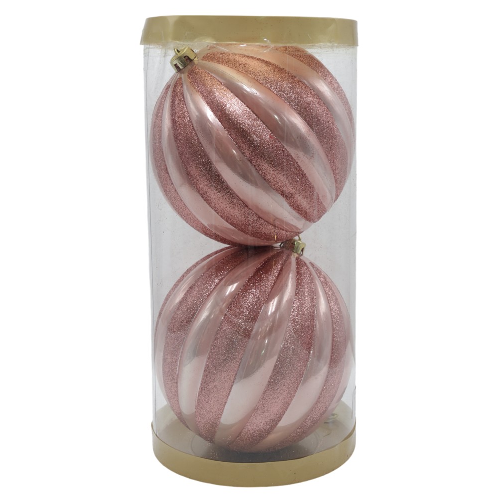 Sfere dekoruese (pk 2), plastike, roze gold & gliter, 20 cm