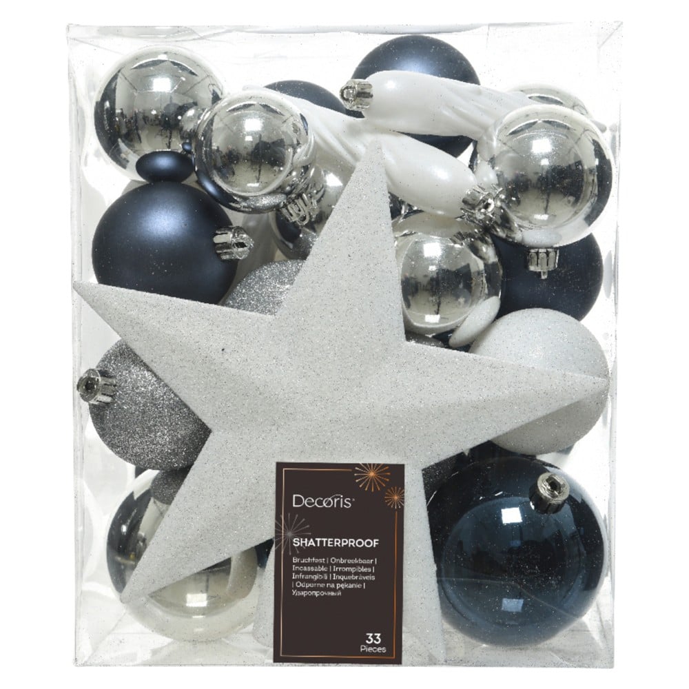 Po vlerësoni:Decorative sphere (pk 33), plastic, color blue, silver, white, D8 cm