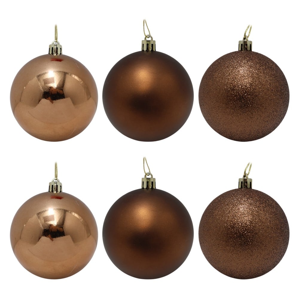 Decorative balls (pk 6), plastic, bronze, 3 models, 8 cm