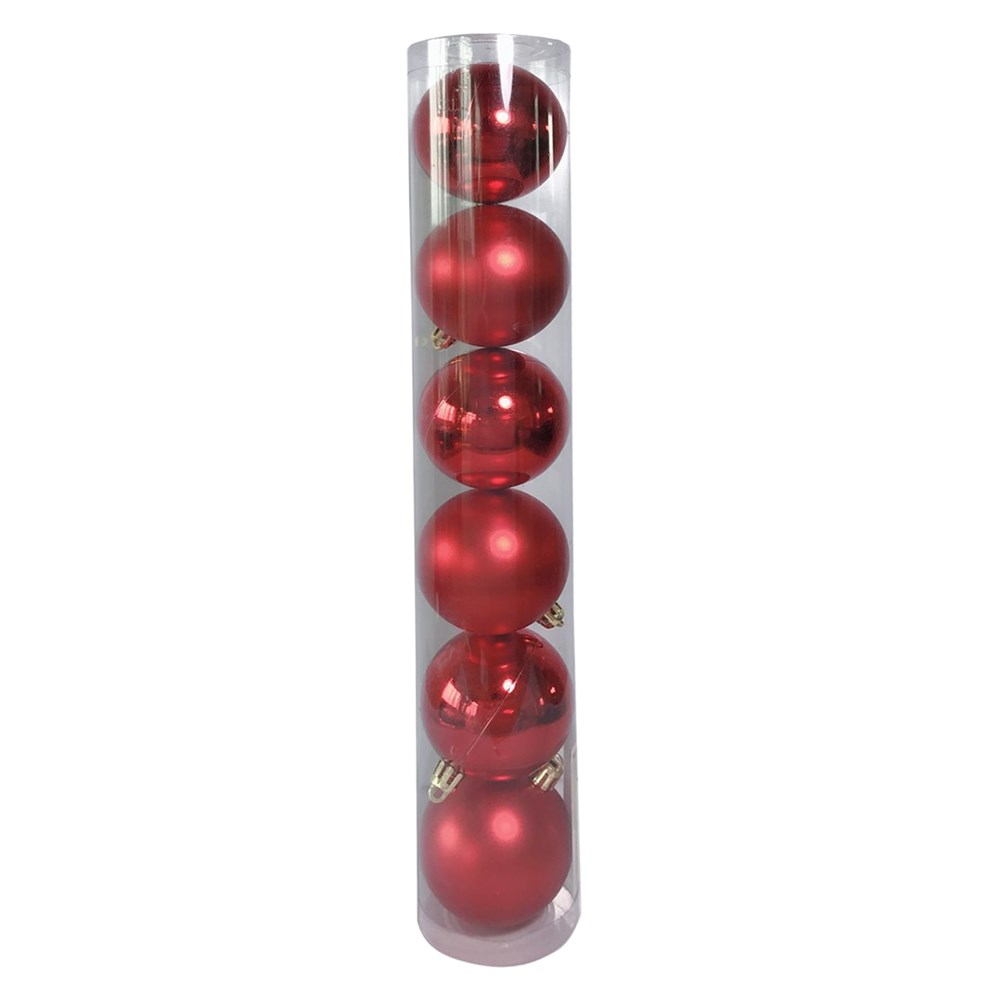 Decorative sphere, plastic, red, dia 8 cm, 6 pcs