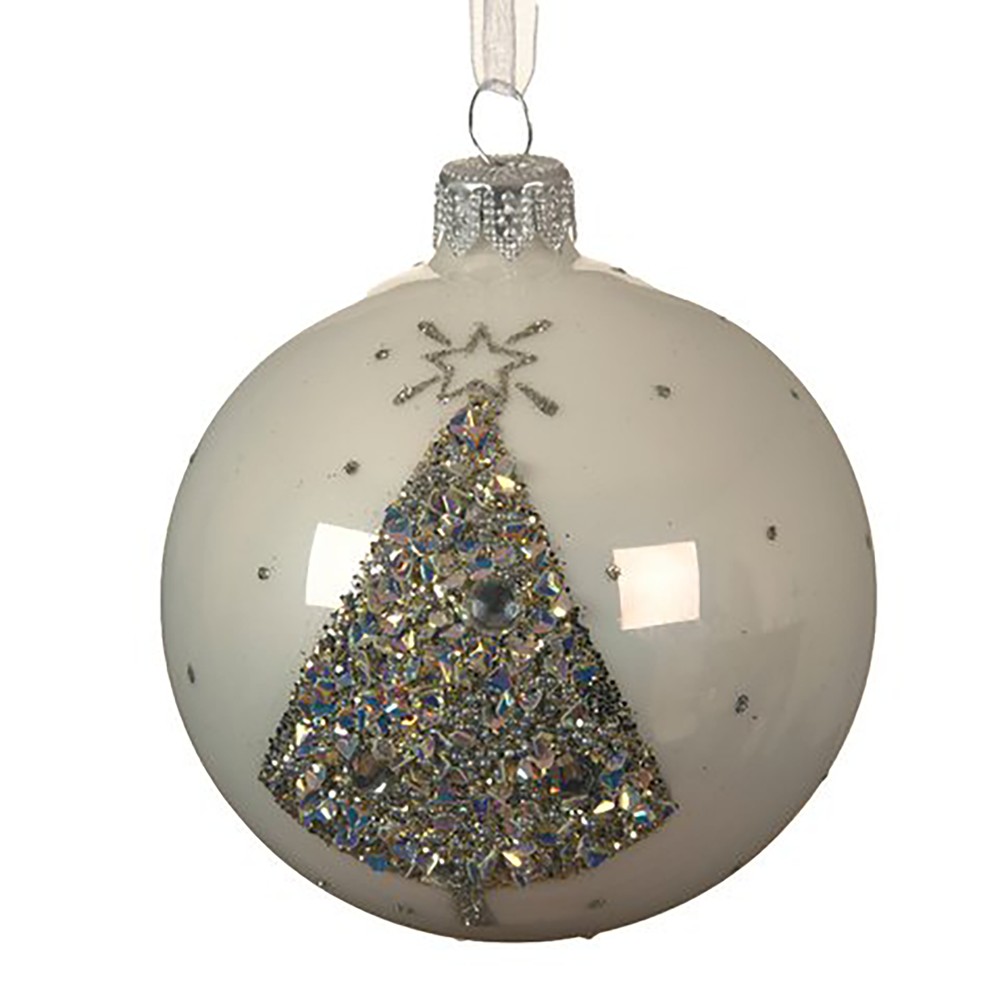 Po vlerësoni:Sferë dekoruese, qelq, e bardhë dimërore, dia.8 cm