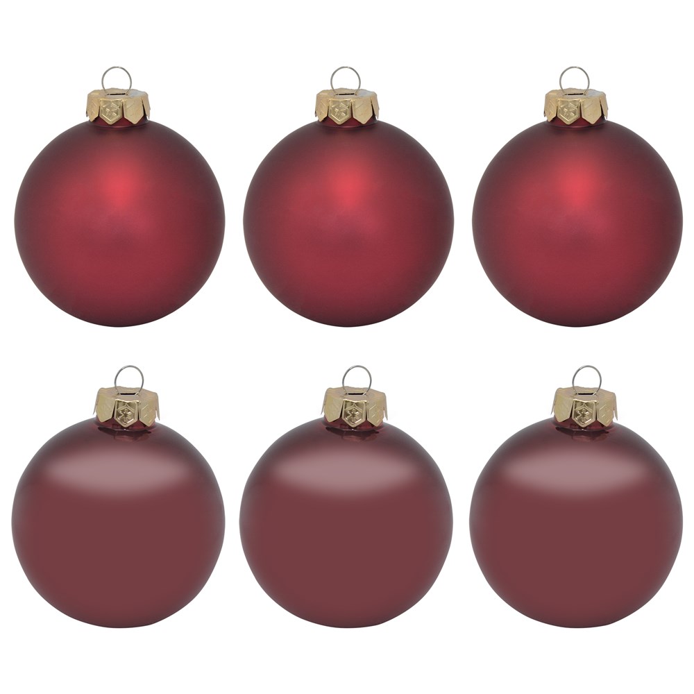 Sferë dekoruese, qelq, e kuqe, dia 8 cm, 6 copë