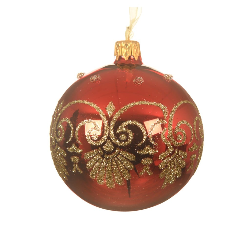 Sferë dekoruese, qelq, e kuqe, dia.8 cm