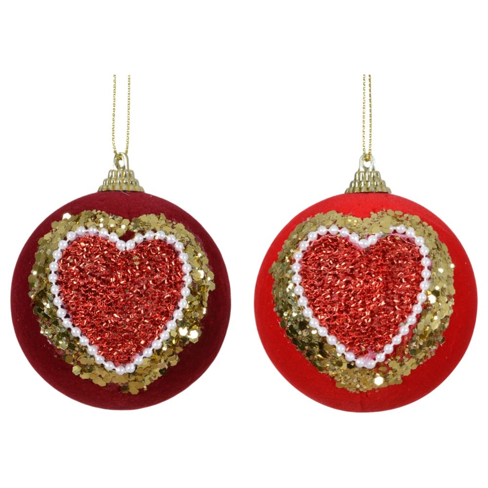 Sfere dekoruese, qelq, ngjyre e kuqe me gold, D8 cm