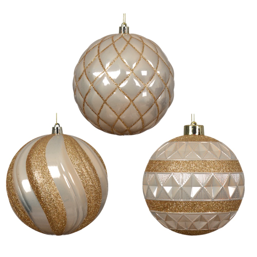 Po vlerësoni:Sfere dekoruese, qelq, ngjyre gold me krem, D12 cm