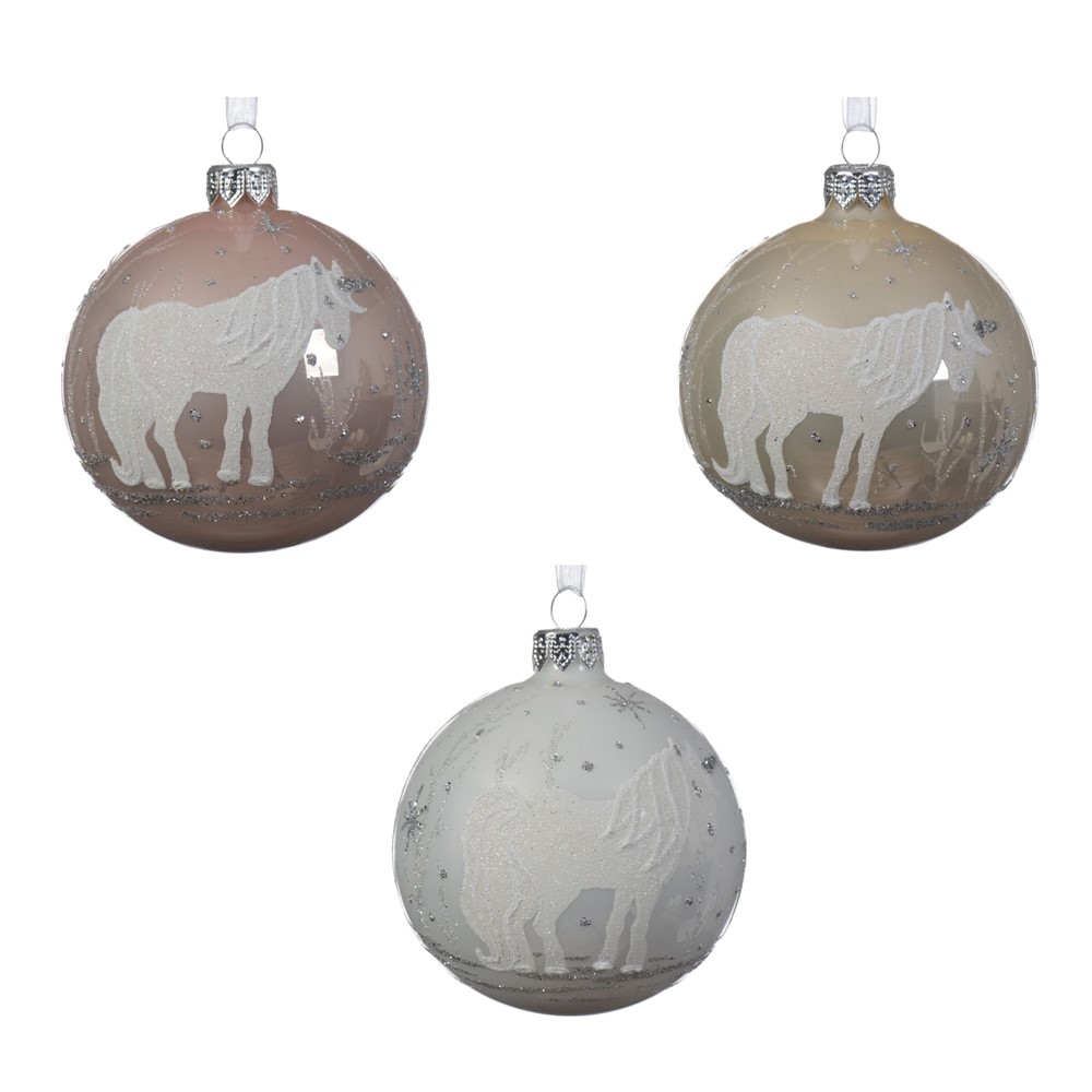 Sferë dekoruese prej qelqi me ngjyra të ndryshme me diametër 8 cm. Ky aksesor dekorues përdoret për të zbukuruar pemen e vitit të ri, duke i shtuar magjinë e festave ambjenteve tuaja festive të fundvitit.