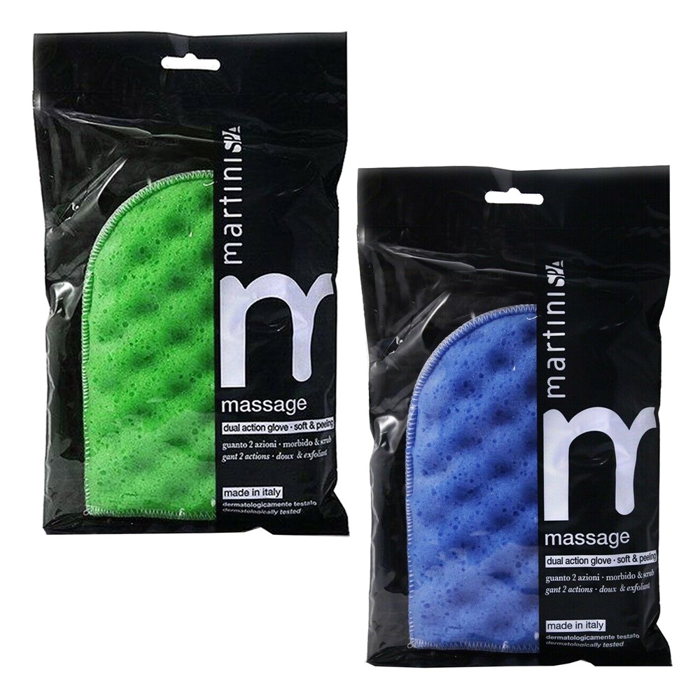 Sfungjer masazhues per dush, Martini. Doreza me veprim të dyfishtë ka një anë të butë për një masazh të butë dhe një anë eksfoliuese për një piling të thellë, e testuar dermatologjikisht. Shpëlajeni para çdo përdorimi.