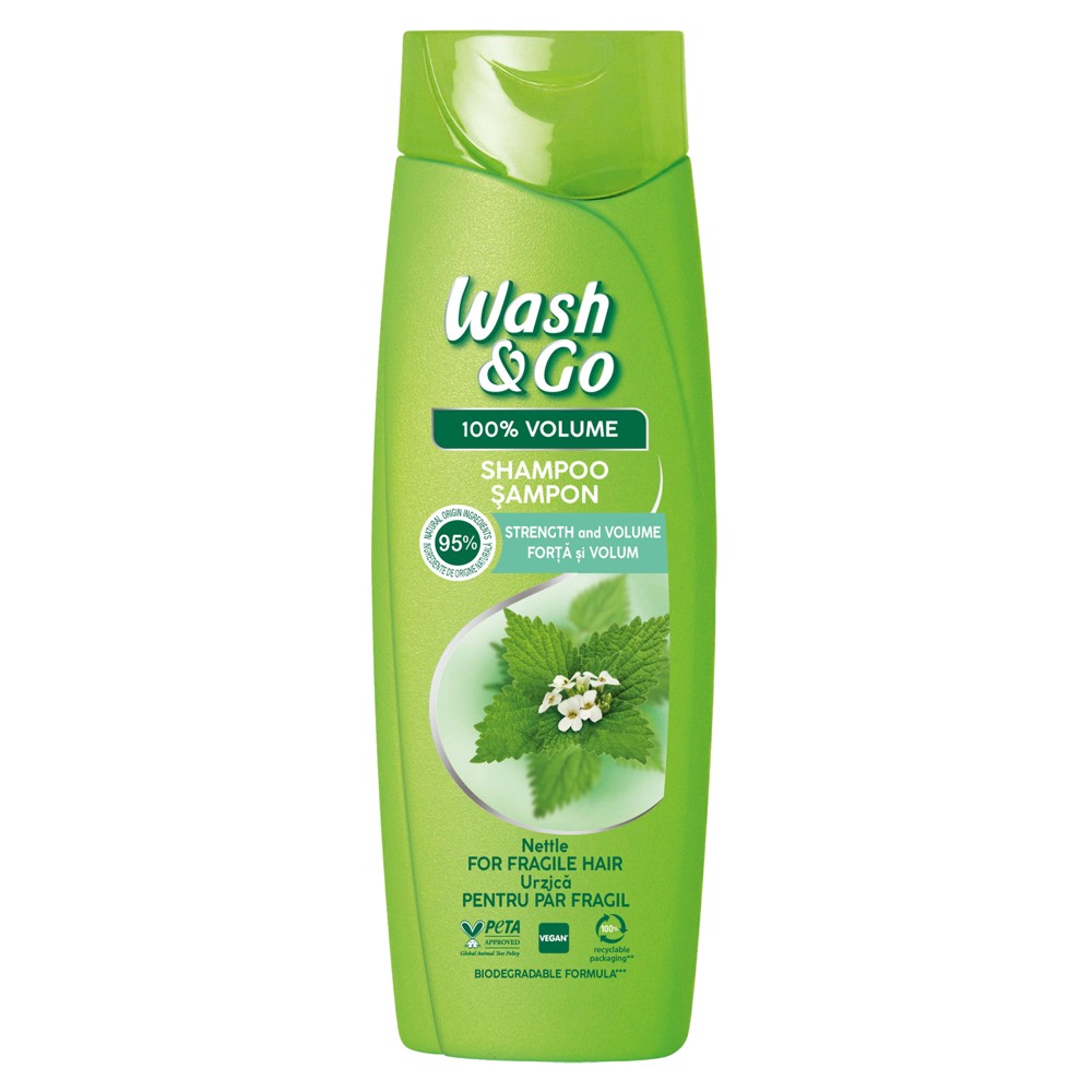 Shampo flokësh për volum, me efekt forcues, Wash & Go, plastikë, 360 ml, e gjelbër, 1 copë