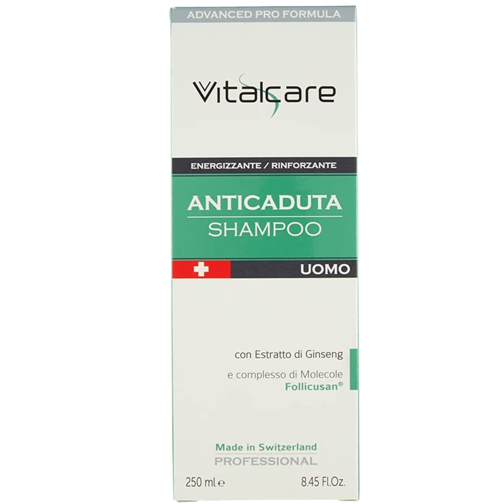 Shampo kundër rënies së flokëve Vitalcare. Promovon mirëqenien e flokëve dhe të skalpit. Formula e tij ekskluzive, e projektuar për të stimuluar funksionet e rritjes së flokëve, bazohet në veprimin rigjallërues dhe stimulues të fibrave të flokëve për shkak të Kompleksit të Molekulës FOLLICUSAN®; nën veprimin antioksidant të vitaminës E dhe B3 dhe në veprimin stimulues të rritjes së flokëve me Ekstrakt Bizelesh..
