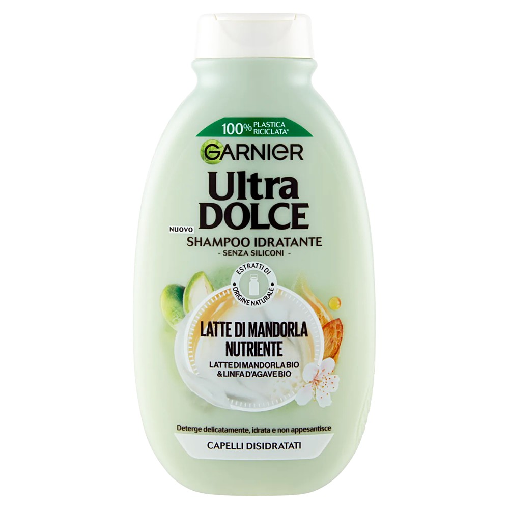 Shampo hidratuese Garnier Ultra Dolce me qumësht bajame. Ilaçi më ushqyes për flokë më të butë dhe më të hidratuar. Zbuloni fuqinë e qumështit ushqyes organik të bajames. Së bashku, ato i japin jetë një formule hidratuese që nuk rëndon dhe rigjallëron flokët. Përdorimi: Flokë të dehidratuar.