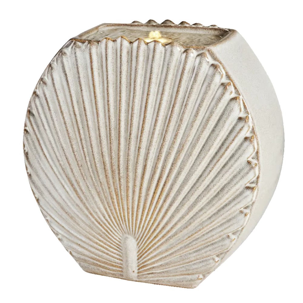 Shatërvan i bërë nga material qeramike, me dimensione 22x42x41 cm, ngjyrë e bardhë dhe ndriçim LED. Ky shatërvan ofron një dizajn modern dhe elegant, duke krijuar një atmosferë relaksuese dhe të ndritshme në çdo hapësirë të jashtme, ndërsa funksionon edhe si një element dekorativ tërheqës.