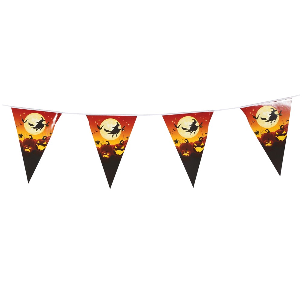 Shirit dekorativ, prej materiali poliestre, me gjatësi 2.75 m, me dizajn Witch and Pumpkin në ngjyrë të zezë dhe portokalli. Përdoret për dekorimin e ambienteve të ndryshme, gjatë festës së Halloween-it.