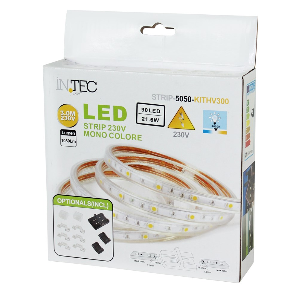 Shirit ndricimi Led 4000K 220V 300CM 5050 30XLED/M TOT 21.6W IP65