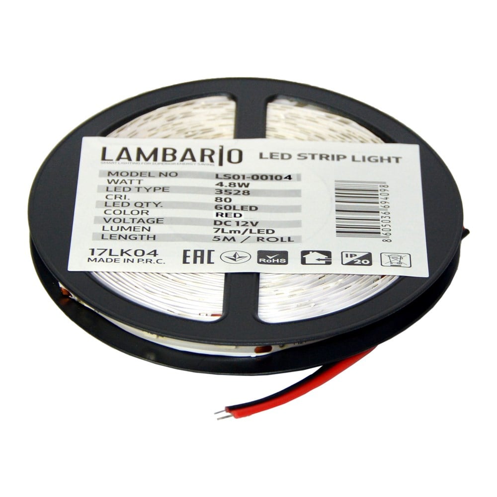 Shirit ndriçimi LED Lambario 3528, 4.8 W, 60 LED/m, 12 V-DC, ndriçim të kuq, IP20, 5m/pack