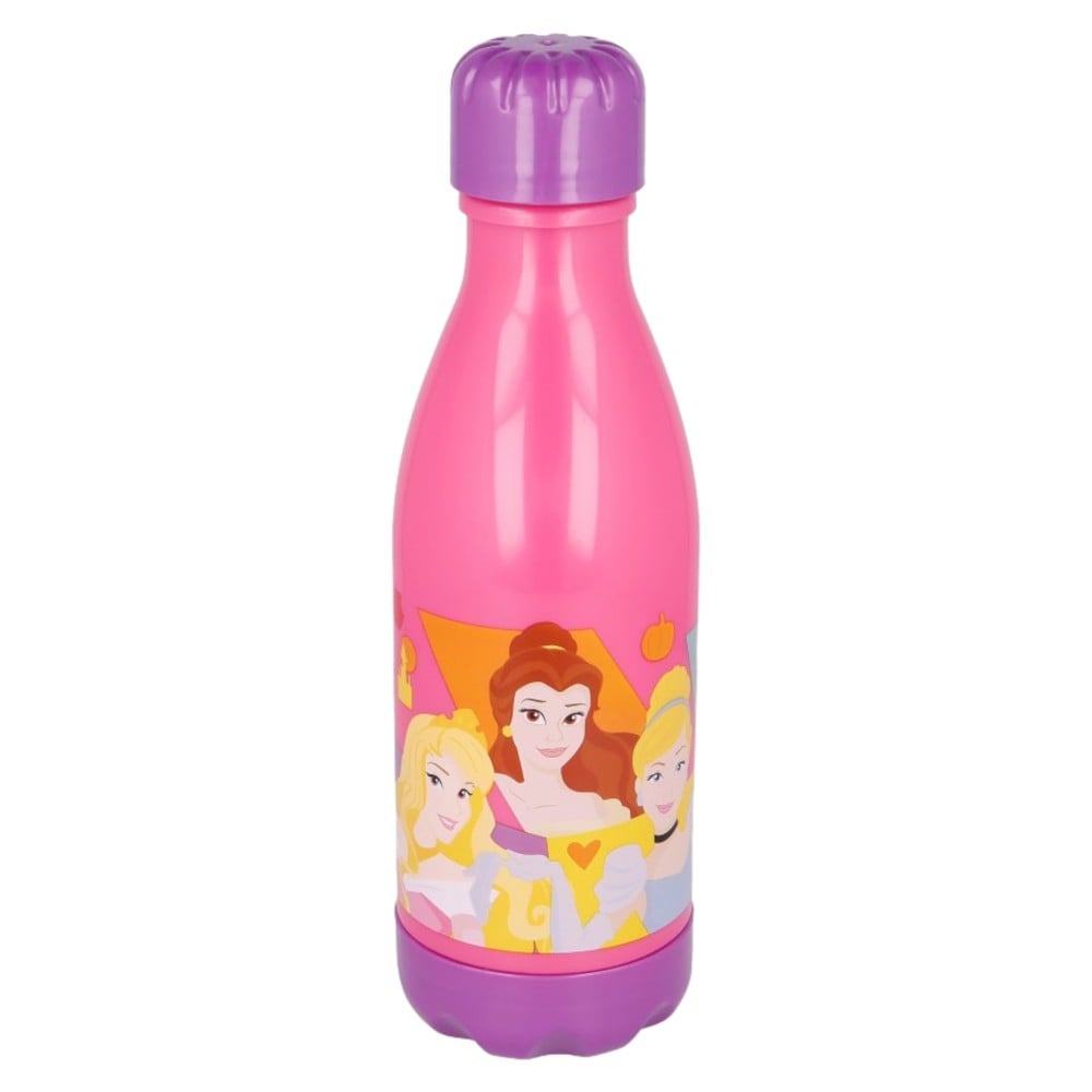 Shishe plastike 560 ml e pajisur me një kapak që parandalon çdo derdhje aksidentale, duke lejuar hidratim të sigurt për fëmijët gjatë gjithë ditës. Dizenjot jane nga personazhet e dashur te femijeve si Princess.