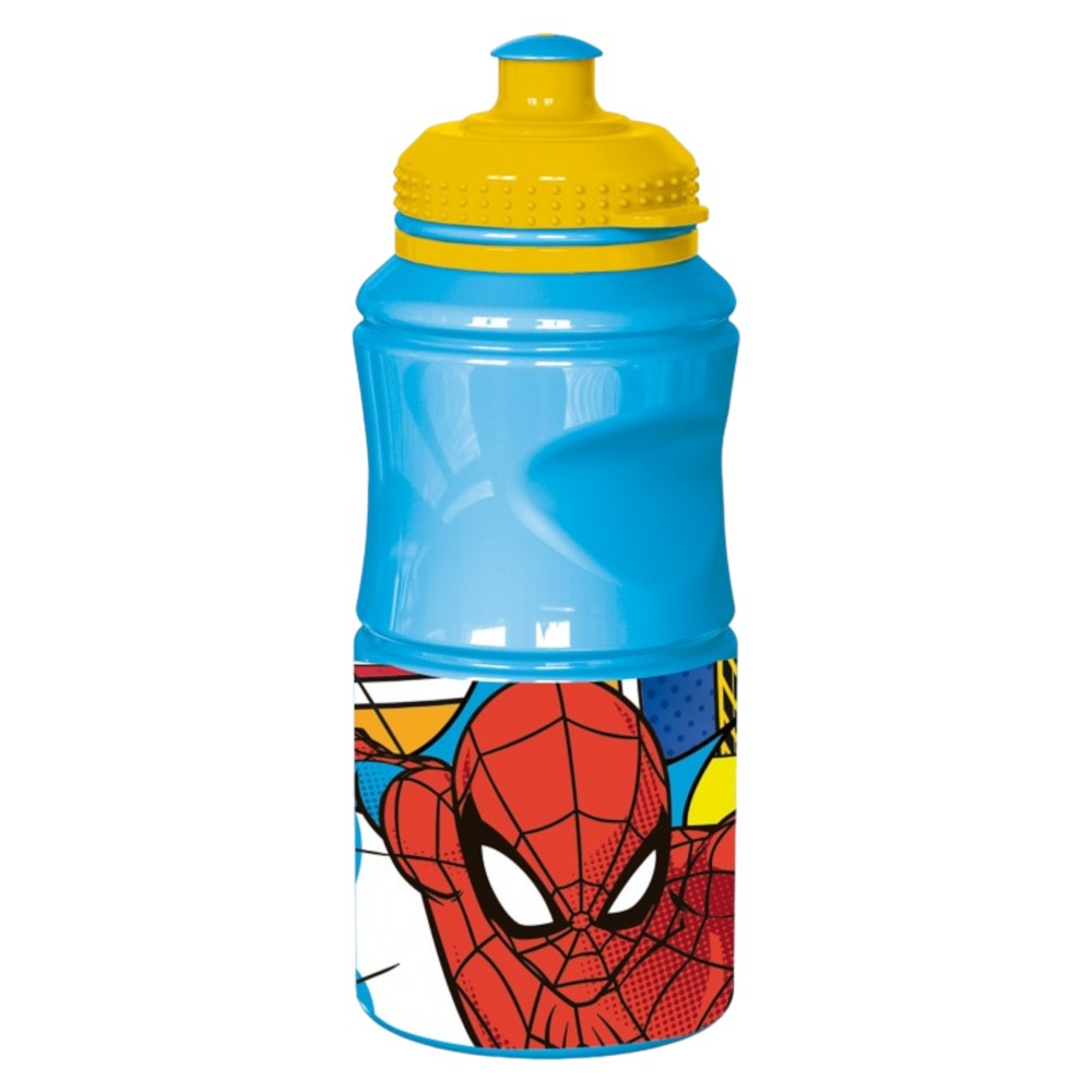 Shishe uji 380 ml për fëmijë, frymëzuar nga një prej superheronjve më të famshëm Spiderman. Produkti është i lehtë për t'u përdorur falë formës ergonomike, kapakut kundër derdhjes dhe brezit kundër rrëshqitjes. Modeli i shishes së ujit është i ngjashëm me ato që përdorin çiklistët, ndaj mundëson hidratim të sigurt për të vegjlit gjatë gjithë ditës dhe mund t'i shoqërojë në çdo aktivitet që kryejnë: sport, shkollë, kohë të lirë. Prania e kapakut kundër derdhjes e bën gjithashtu shumë të sigurt, duke shmangur rrjedhjet.