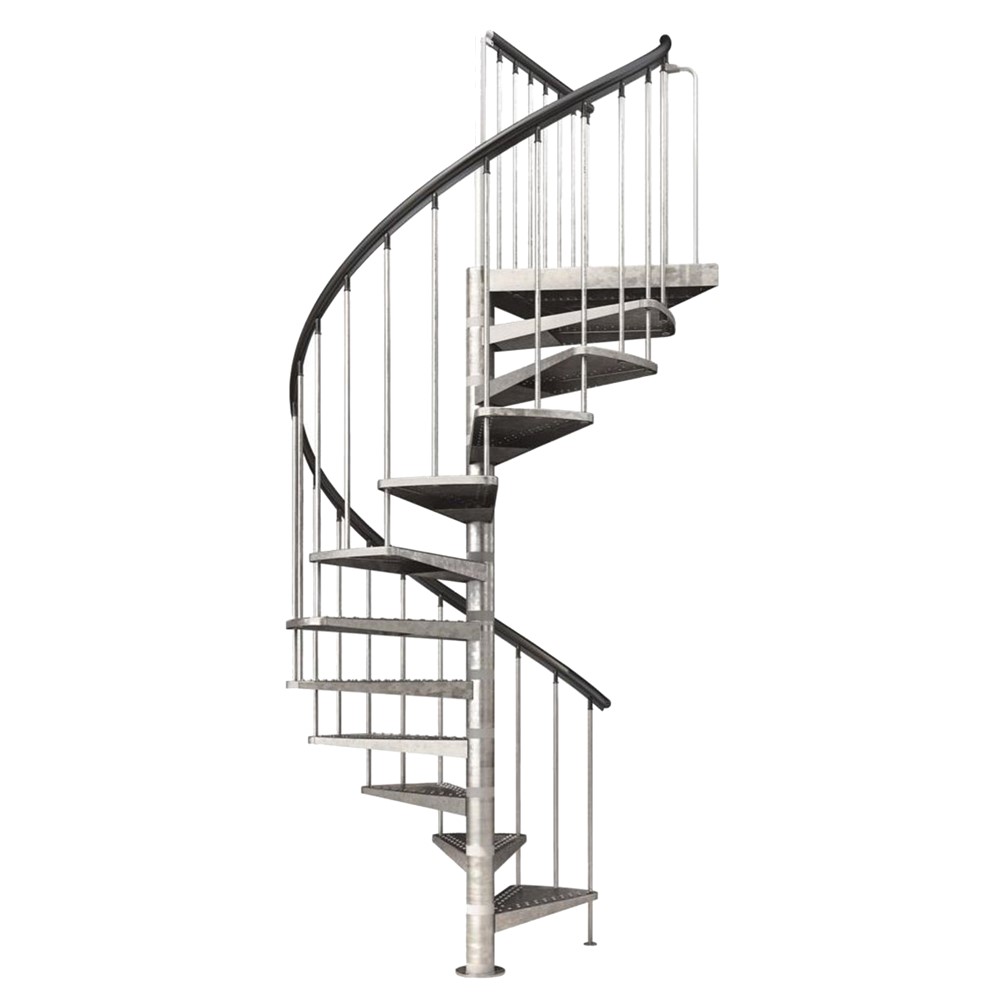 Garden Spin Staircase, with metal steps, ø155 cm, H282 cm, 11 tread + pedal, gray steps and gray structure