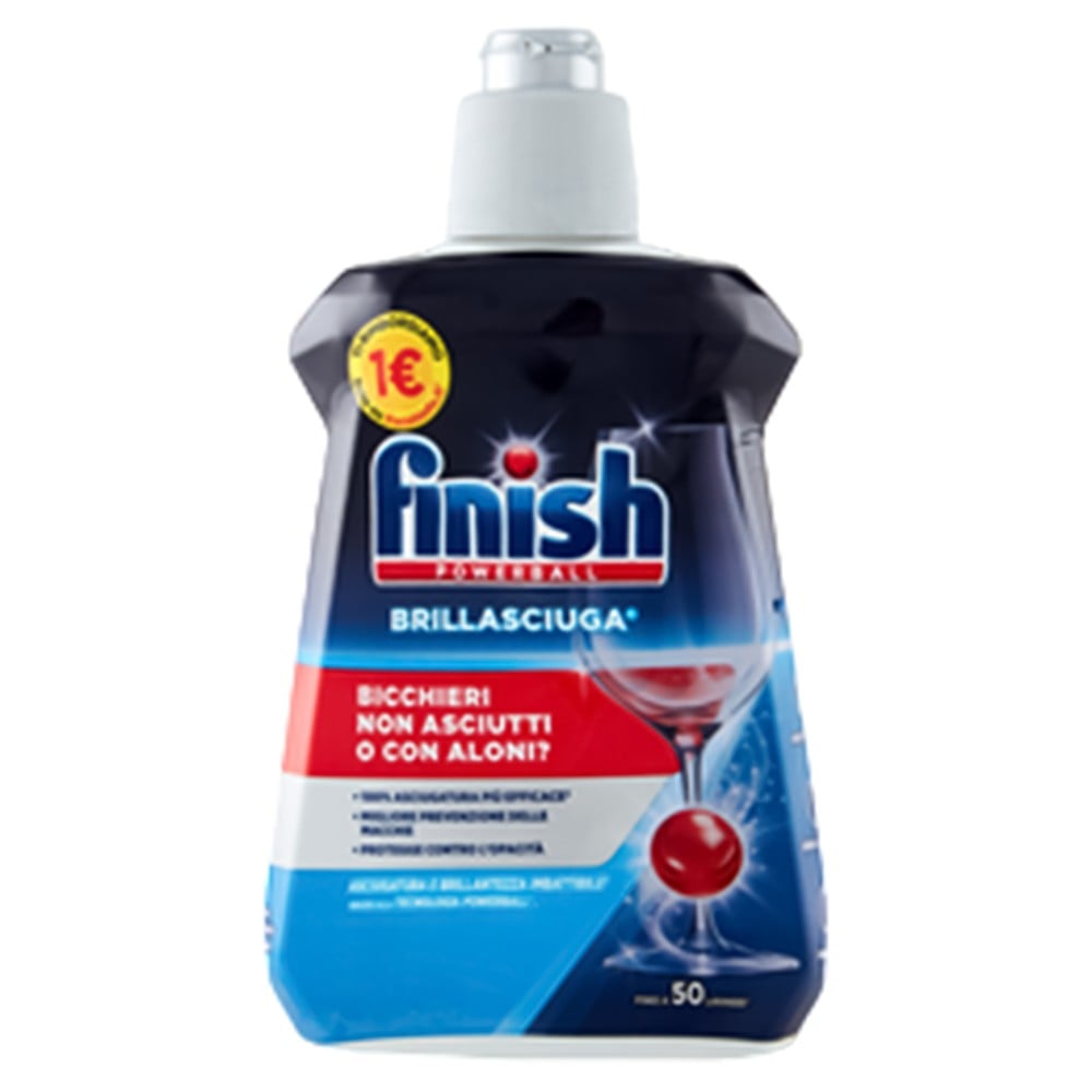 New Finish Rinse Aid 5X Power Actions u zhvillua për të garantuar enët gjithmonë me shkëlqim dhe të thatë. Është pjesë e aditivëve të larjes dhe përdoret së bashku me detergjentin për të vepruar në mënyrë specifike vetëm gjatë fazës përfundimtare të shpëlarjes, duke eleminuar njollat, për një rezultat perfekt larjeje. Gjithmonë kombinoni atë me detergjentin tuaj të preferuar për enëlarëse. Përdorimi i tij është shumë i thjeshtë: thjesht mbushni ndarjen speciale të kontejnerit të shpëlarësit. Finish Shpëlarësi do të lëshohet automatikisht, në kohën e duhur gjatë ciklit të larjes, sa herë që ndizet lavastovilja juaj.
