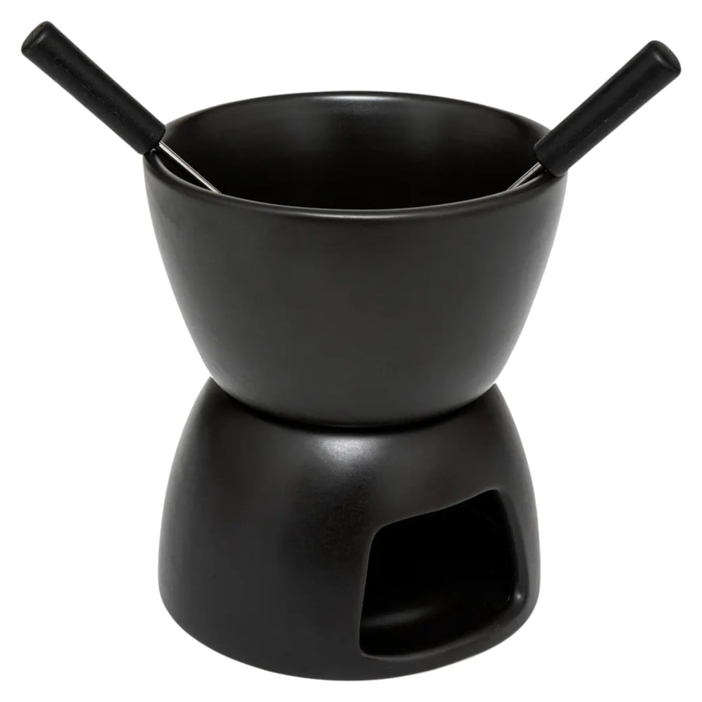 Sillni rehati në tryezë me këtë set Fondue. Ky grup elegant, i zi me fondue është ideal për të shijuar individualisht fondue të shijshme, qoftë djathë, çokollatë apo ushqime të tjera të shijshme. E bërë prej guri me cilësi të lartë, ajo ofron si elegancë ashtu edhe qëndrueshmëri.